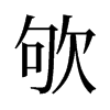 ● 欨 xū ? ㄒㄩˉ ◎ 〔欨愉〕和悦,如“其康乐者闻之,则欨欨欢释,抃舞踊溢。”