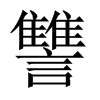 [①][chóu][《廣韻》市流切,平尤,禪。]亦作“讐1”。“雠1”的繁体字。(1)应答;报答。(2)报复。(3)应酬。参见“讎柞”。(4)应验。(5)相符合。(6)校勘;校对。(7)相等;相匹敌。(8)仇敌。(9)谓视为仇敌。(10)仇恨;怨恨。(11)施行,用。(12)出售。(13)偿付。(14)通“稠”。多,数。参见“讎斂”。