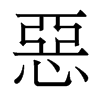 “亞2”的今字。亦作“僫2”。亦作“悪2”。“恶2”的繁体字。